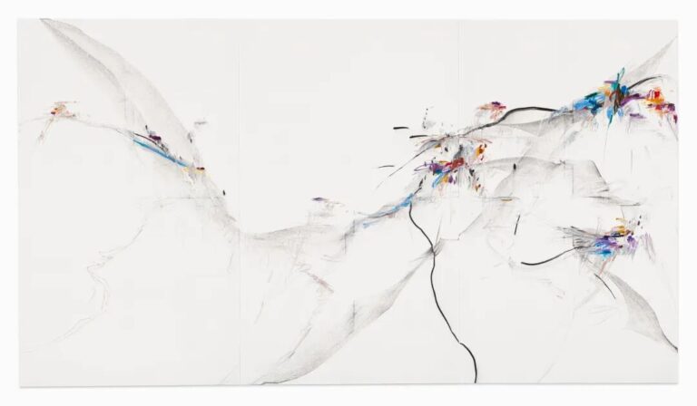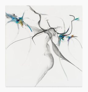 Wang’s practice is shaped by a range of bodily disciplines, including yoga, dance, meditation, and her long-term study of the guqin, a traditional Chinese string instrument. These practices inform her sensitivity to tempo and duration, translating into varying intensities of line and gesture. Slow, deliberate marks carry a different energy from those executed with speed, with each gesture registering a distinct rhythm and moment of concentration.